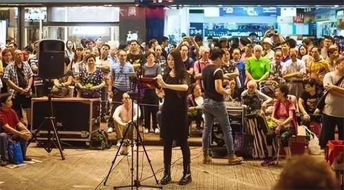 她将舞台搬到了中环码头,继续为喜爱她的观众歌唱。