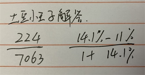 注意,3.1是14.1-11的结果,可是式子前面还带了一个A/B,可以看做是这个式子的系数,是224/7063,不到1/30,它起到什么作用呢?就是把3.1%变成0.1%。因此答案选A。