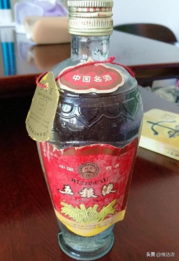这瓶五粮液是当年老伯用6.5元钱买到的,经过了30多年的保存,品相还非常完好,里面的白酒一点也没有缺少,据估算市场售价最少8000元左右。藏友说,最开始这瓶五粮液刘老伯并没有重视,只是把它放在了酒柜上,后来听其它藏友的建议,用保鲜膜把瓶口处密封了几圈,不然放到今天多少都会跑酒的。