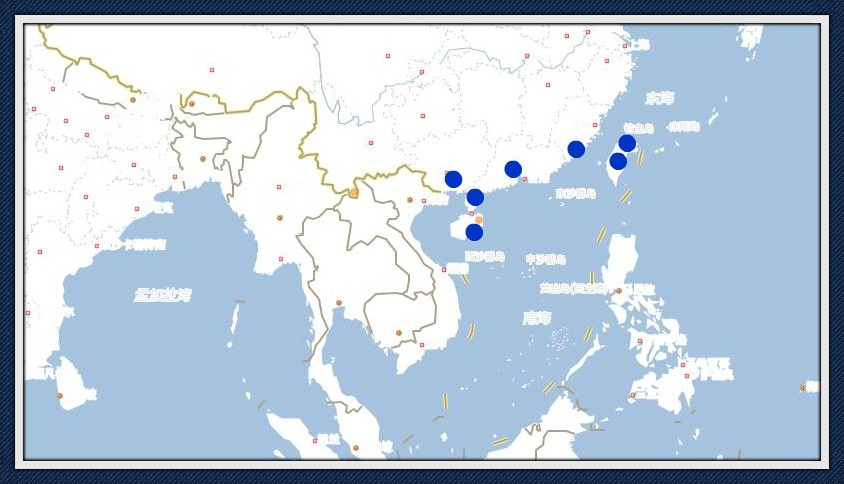 图中蓝点为当前星苹果有栽种的省份