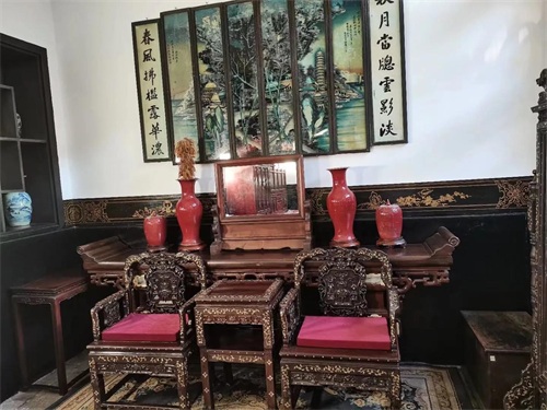 乔家大院展出文物5000多件,万人球、九龙灯、犀牛望月镜等都是珍品。乔家大院内的砖雕、木雕、石雕、家具等都属上乘之作。