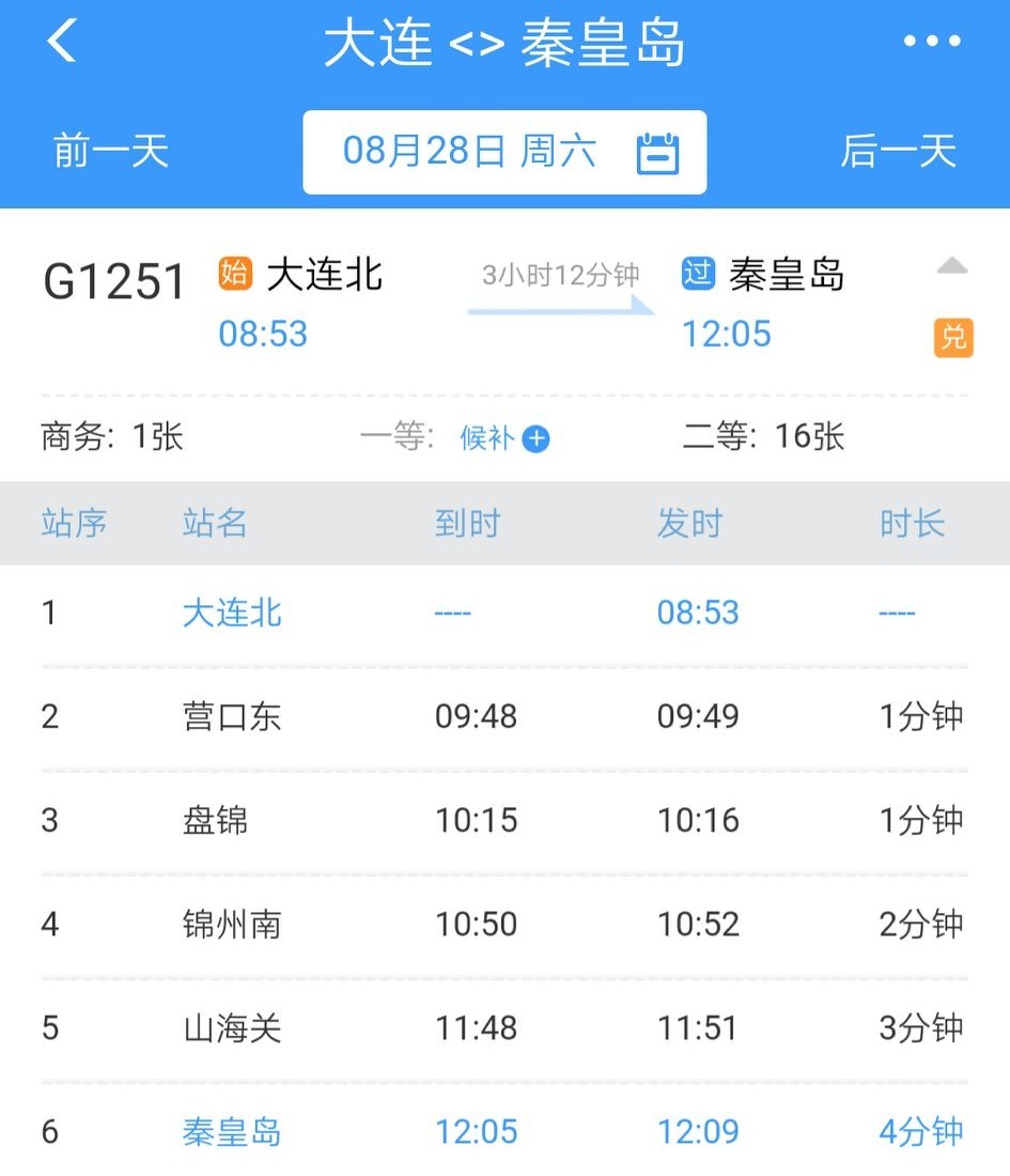 这个方案适合晚上出发的人,票价只要150多。适合没法赶上晚上大连直达北京普速列车的人。