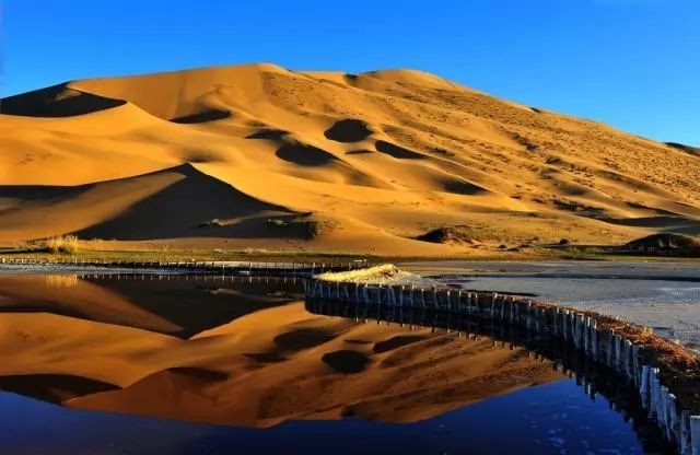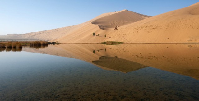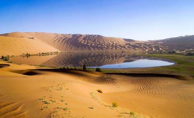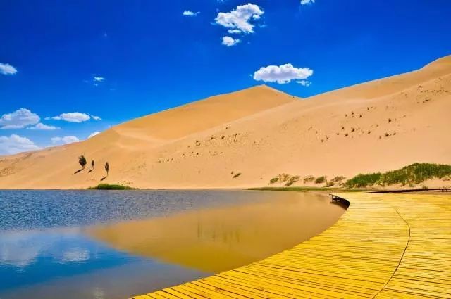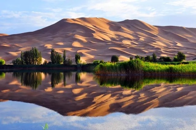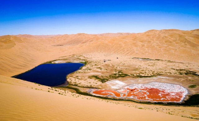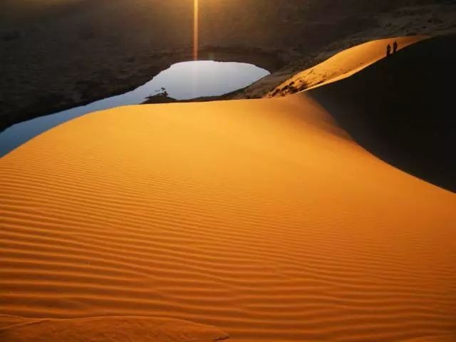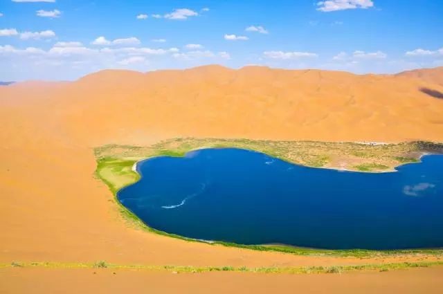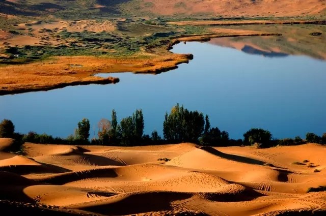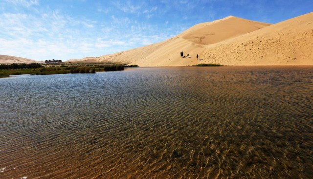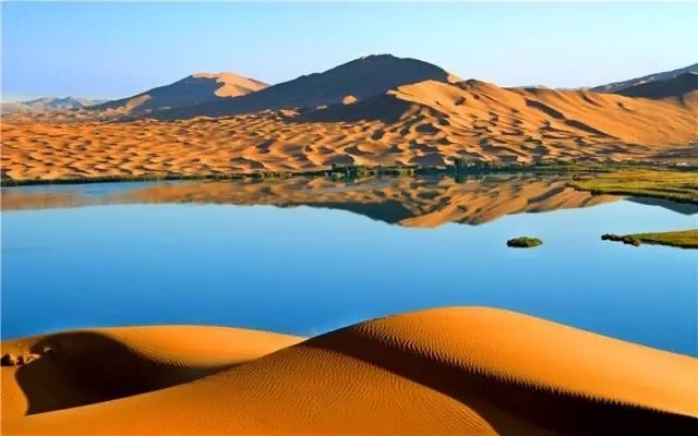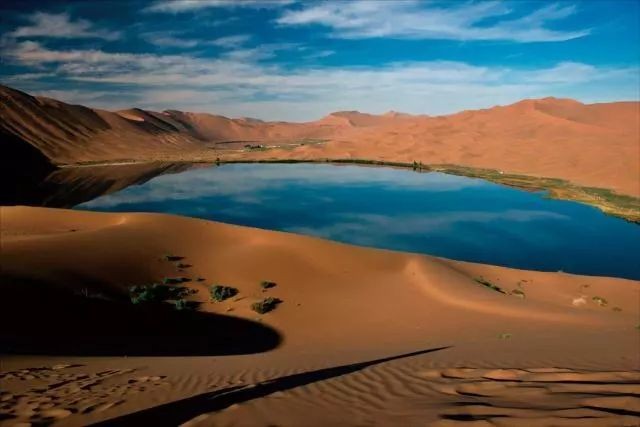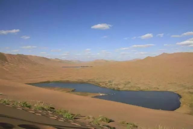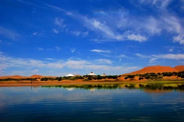 巴丹吉林沙漠有内陆湖泊144个,其中已命名113个。这些湖泊千姿百态,风光迥异。湖边绿草成茵,花草斗艳;湖中甘泉潺潺,鱼翔浅底;湖泊有的沙水相映,有的水天相接,形成了独特的沙漠景观。