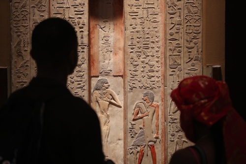 5月16日,人们在位于埃及首都开罗的埃及博物馆参观一块浮雕。 新华社记者 隋先凯 摄