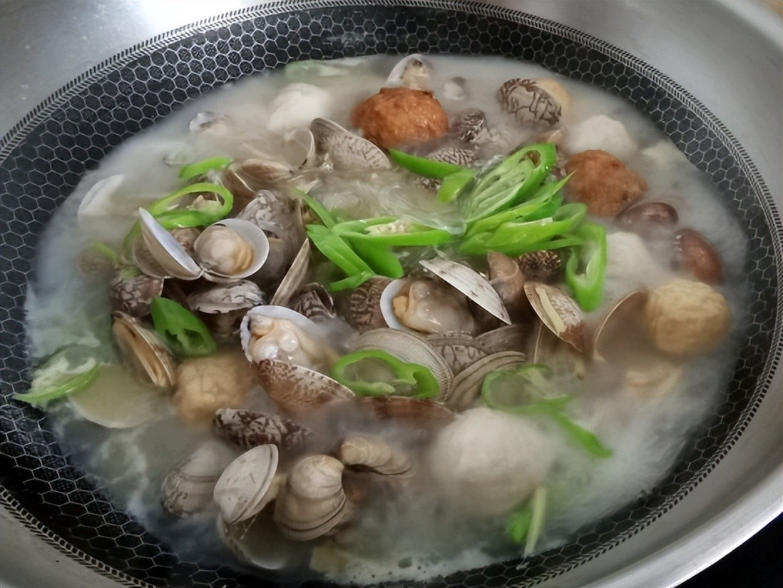2. 在炒花蛤之后,我们加入水后,一定要确认花蛤已经开口了,而且汤汁也变成淡白色,不然花蛤如果没有煮熟,容易损伤肝脏。