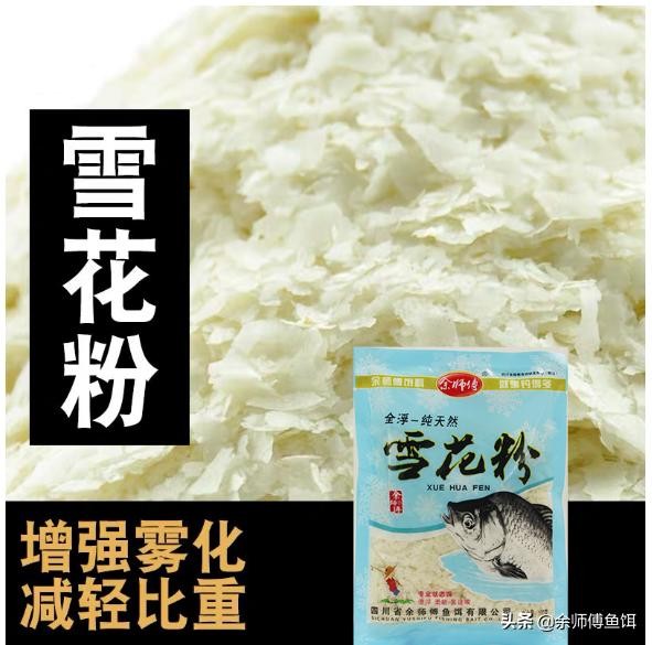 软:添加一量的雪花粉、短丝(避免使用长丝)的拉丝粉和少量膨胀粉调整饵料的比重和状态,这样可以使调出的饵比重弯轻,饵团雾化速度加快,拉出的饵球小而蓬松,比较适合冬季鱼开口小的特点。