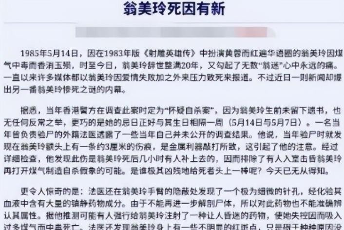 “翁美玲之死”首次翻案!戚美珍打了个翻身仗,背锅多年很无辜