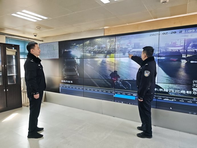 接到电话后,指挥室辅警李亚男第一时间向带班民警白云飞汇报情况。白云飞迅速响应,协调派出所民警及求助群众进入指挥室,同步启动视频侦查机制。通过调取未来路沿线及周边多个路口监控,民警们逐帧筛查、反复比对,不放过任何一处细节。