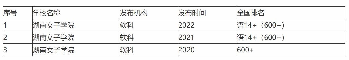 在软科大学2022排名中,湖南女子学院排在600名之后,位次不算太高,相较于2020、2021年,变化不大。