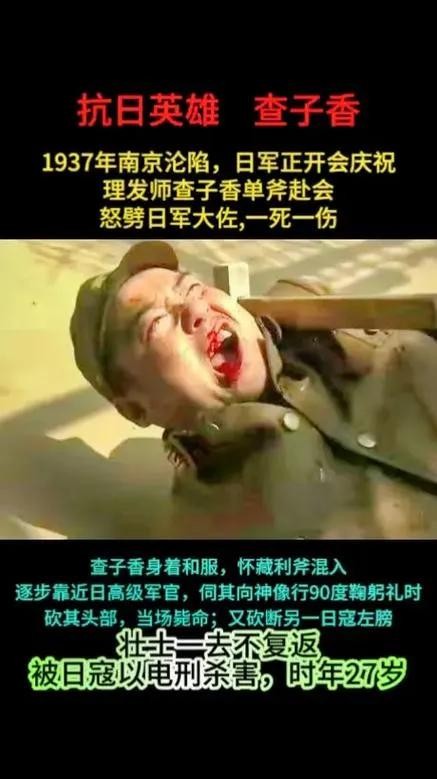 南京沦陷日寇庆功,理发师查子香砍下日高官头颅,仅27岁英勇牺牲