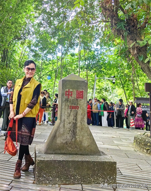 中缅219号界碑,游客在排队打卡。