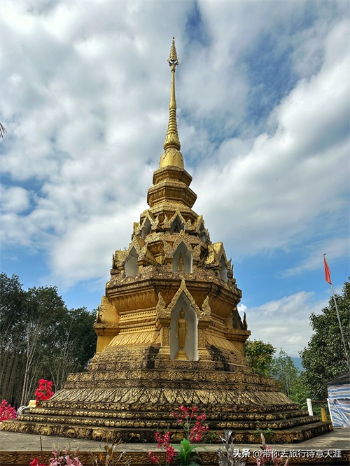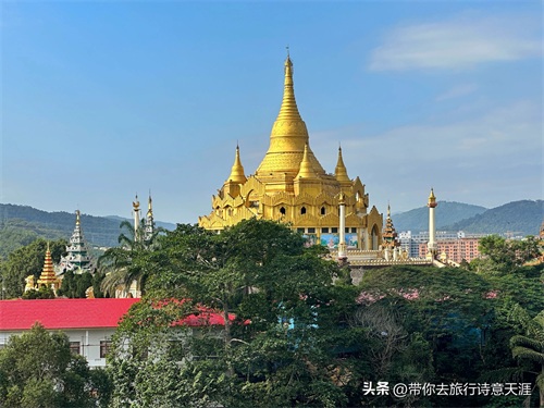 中缅友谊大金塔,位于第四特区首府勐拉境内的金莲山上,由两国共同筹资建造。金塔高48米,基围238米,据说金塔的顶尖是纯黄金打造的。