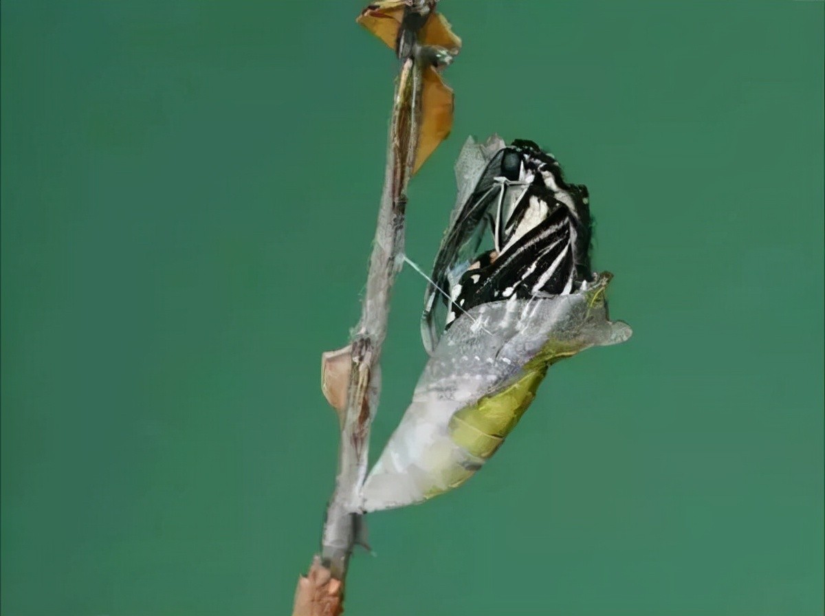 柑橘凤蝶就在蛹内,10天的时间完成了从幼虫到成虫的变态发育。