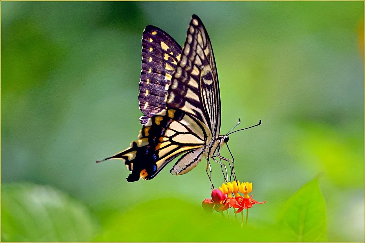柑橘凤蝶是鳞翅目凤蝶科凤蝶属,是我国常见的凤蝶之一。寄主植物为柑橘类芸香科植物、花椒等。卵一般产于嫩叶背面或叶尖,幼虫孵出后即在此取食,一生可取食5-6片叶子。