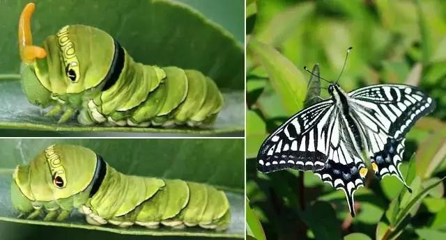 柑橘凤蝶幼虫在小的时候,没有自保的能力,身体长得和鸟屎一样,以此躲过天敌。