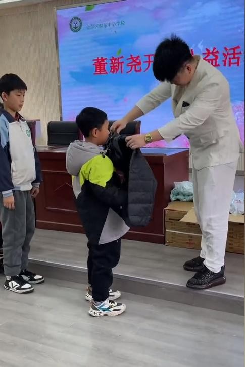 但他也有做公益的时候,在他短视频的评论区有人给他留言,说家乡的孩子买不起校服,暖心的他就立马联系上那位粉丝,连夜为山里的孩子送上衣服。