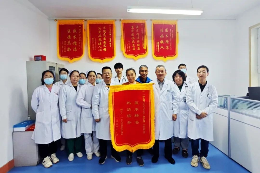 2024年7月的一天,毛小平接诊了一位急诊患者,经初步观察和诊断,患者当时口角歪斜,言语含糊不清,左侧肢体不能活动。他在询问病史后立即开启脑卒中救治绿色通道,经头颅CT检查确诊为急性脑梗塞。患者确诊后,他立即带领科室团队实施静脉溶栓治疗。溶栓结束一个小时后,评估该患者神志清晰,左侧肢体肌力4级,治疗有效。随后的几个月里,他又连续为4名患者成功实施静脉溶栓治疗。几位患者在身体康复后,先后送来了锦旗和感谢信。“我们在家门口花小钱,治大病,毛医生真棒,149团医院真行。” 患者说。