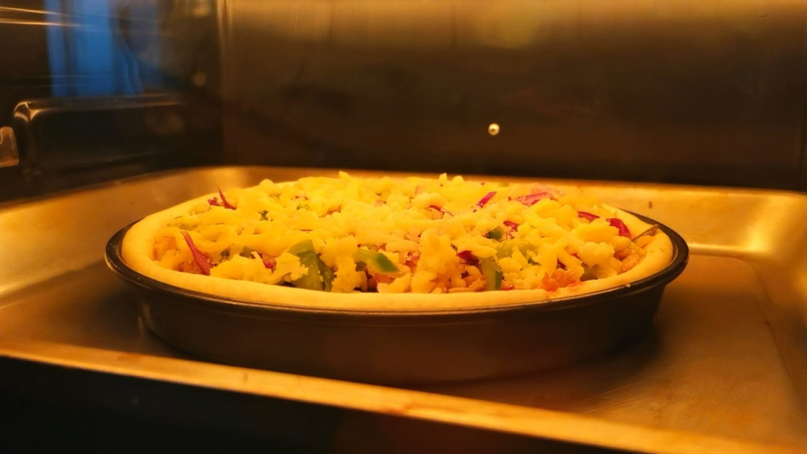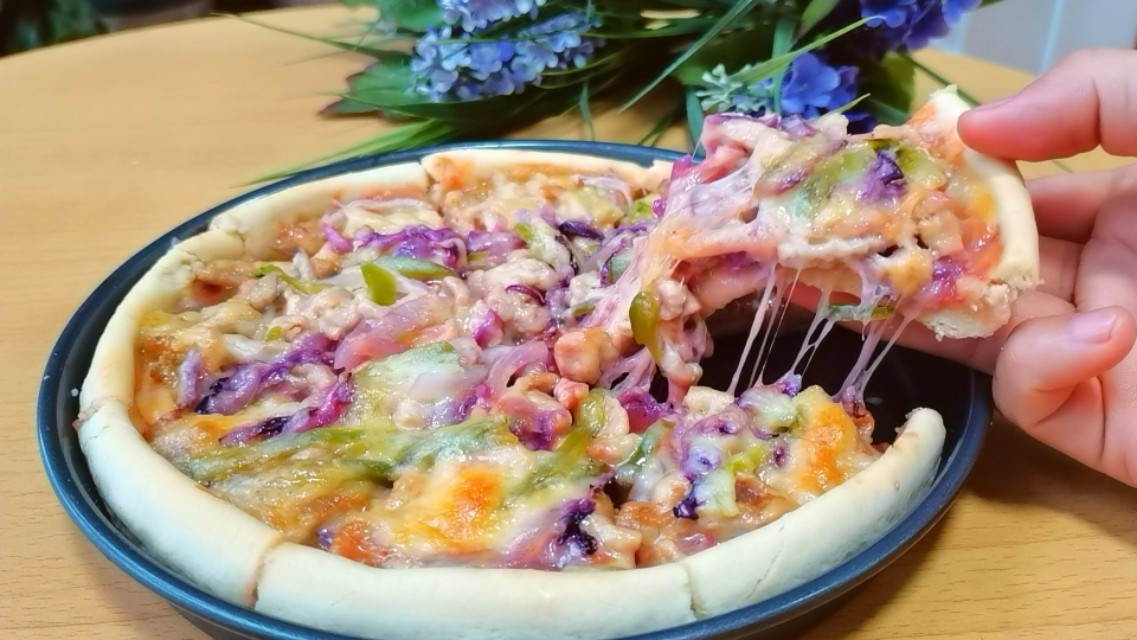 孩子想吃披萨,在家就能给他们,自己在家做,配菜可以丰富搭配,还能制作多种口味,关键干净卫生,而且经济实惠。