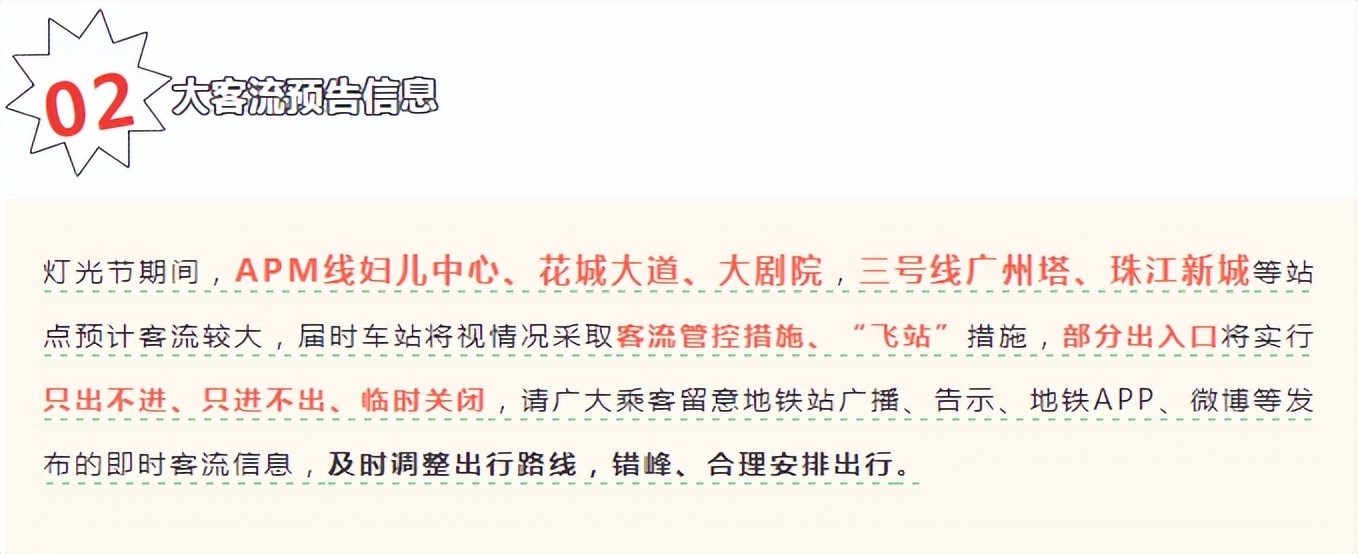 2、灯光节部分交通或临时管制,注意选择出行方式。(具体以广州地铁官方发布为准)