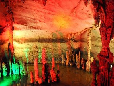 聚龙潭聚龙潭加上配以优美的音乐与彩色的灯光,游客既可策杖聚龙潭观光,又可乘船赏景,大有置身聚龙潭仙境之中。聚龙潭的全长约一千米,游览聚龙潭时间约一小时。聚龙潭景区内依托周围的山水,按照当地少数民族风格建筑,亭、台、楼、阁,四周绿数环绕其中,聚龙潭更为一绝的是神秘的地下河配以广西最具特色的“刘三姐对歌”,聚龙潭整个旅程歌声、掌声、笑声不绝。