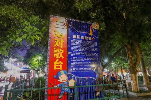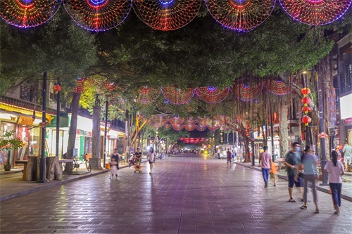 布洛陀大道两侧都是商铺,里面有许多壮族小吃,壮锦文化体验区、壮族非遗展示区等等。