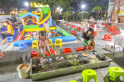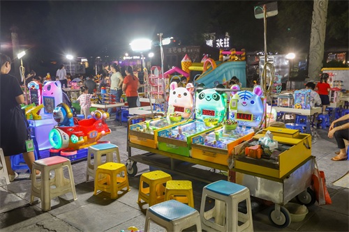 古城中心是广场,这里很适合亲子,广场上有各种好玩的,像套圈圈,钓鱼,游戏机等一些游戏设施。