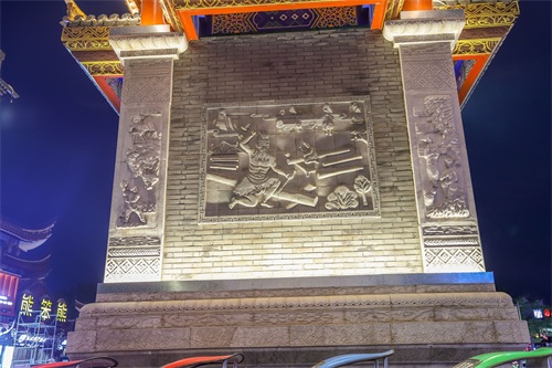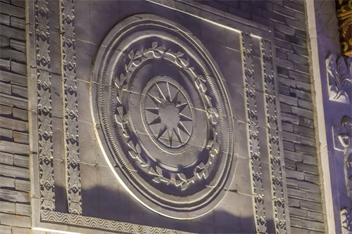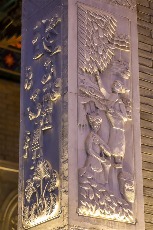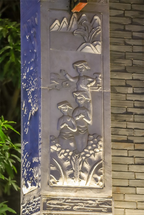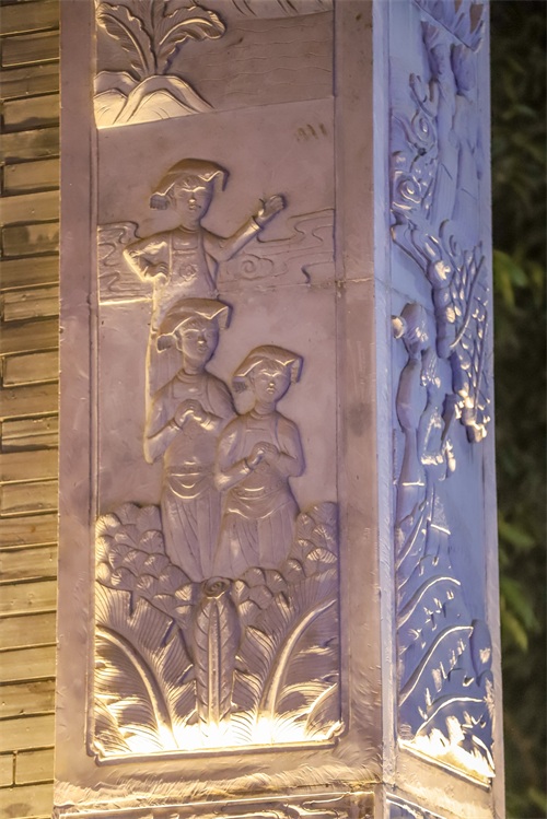 城门下面有描述壮族先民与自然作斗争的主题石雕。