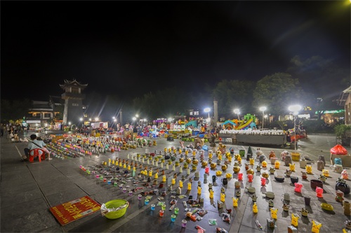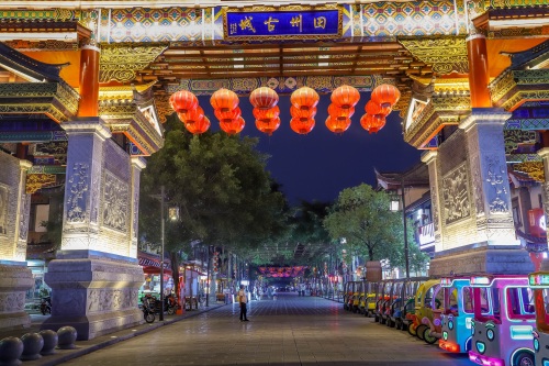 古城里面主干道为布洛陀大道,红色灯笼映照下的青石板小路,显得非常梦幻。