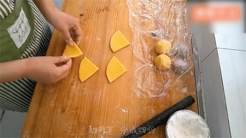 3.用刀把面片切成十字形状(需切到底),分成4等份,
