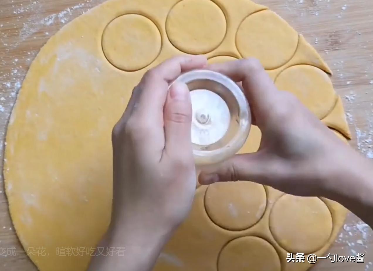 3.文中圆形面片可以先搓成球状再擀圆,也可以直接把面团擀薄后用杯子压出圆形。