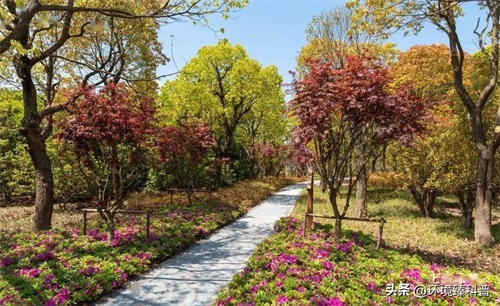 (三)园中有各具特色的乔木、成片的灌木和植被,形成了如落樱缤纷、竹深荷静的景观意境。公园内还设有森林探险区、欢聚休闲林、两片大草坪,供游客在草坪上休憩、野餐、游戏、搭帐篷。