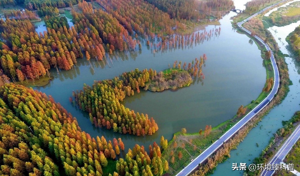 (三)具有独特的“水上森林”60多亩,以池杉等耐水湿树种为主,水林相间,鸥鹭翔集,苗木以池杉、落羽杉、中山杉为主,已知生活的鸟类达到185种,形成了上海地区独有的景观。