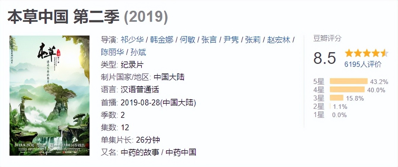 《本草中国》第二季延续以“本草”为核心要素,讲述的是本草的功能和用法。