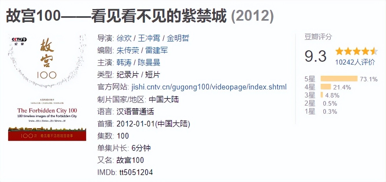 《故宫100》是2005年摄制12集大型纪录片《故宫》之后,又一次以故宫为主题打造的影像作品。历时数年策划筹备,经过近一年拍摄制作。每集用6分钟的时长讲述故宫100个空间的故事,透过“看得见”的空间,将“看不见”的紫禁城建筑的实用价值和美学价值加以演绎,为故宫创建一座超越时空的影像博物馆。