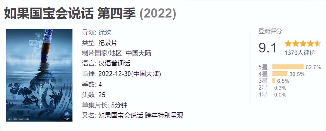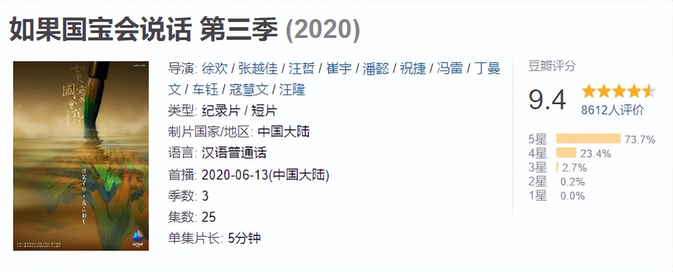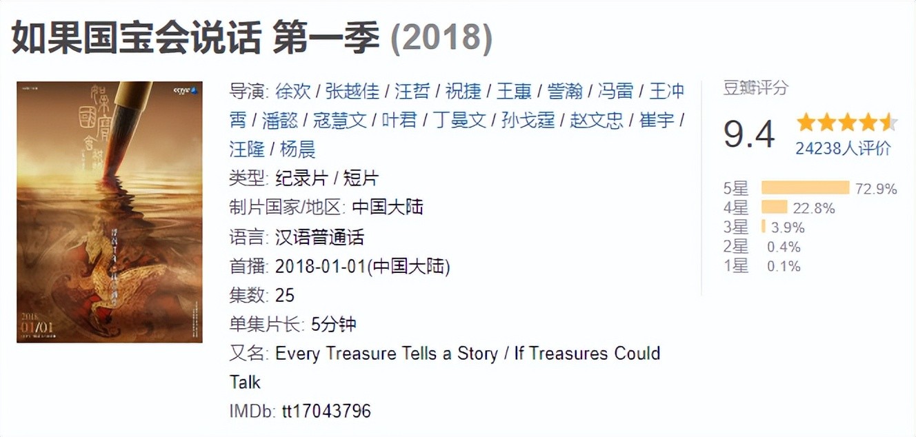 《如果国宝会说话》共100集,分为四季播出。为拍摄该纪录片,摄制组足迹遍布全国,拍摄了近百家博物馆和考古研究所,50余处考古遗址。纪录片没有渲染猎奇和神秘的曲折表述,也避免了高冷的学术性叙事。在每集5分钟的时间里,文物用通俗易懂的语言与观众平等对话,“诉说”发生在自己身上的传奇。