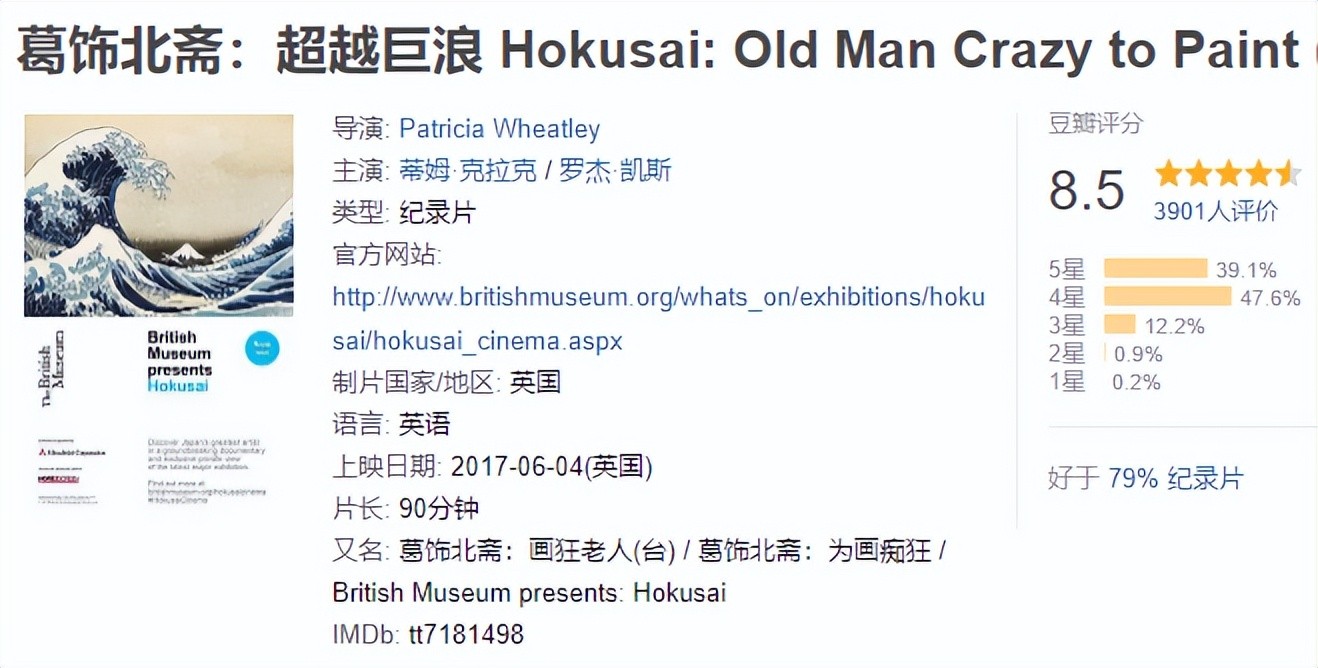 这是一部开创性的纪录片,独家揭秘大英博物馆特展——葛饰北斋:超越巨浪。影片与日本NHK广播公司联合制作,并使用NHK目前世界领先的8K高清拍摄技术,将葛饰北斋笔下的油画、版画和插图纤毫毕现地展现在世界观众面前,探索世界名作的现代诠释,全方位表现葛饰北斋的卓越艺术成就。