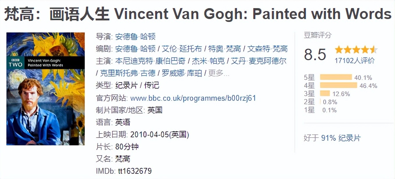 卷福饰演的梵高,是不是已经有了想看的冲动?文森特·威廉·梵高,这位用明亮鲜活的色彩吸引了全世界目光的天才画家,却在美丽的法国瓦兹河畔结束了自己37岁的年轻生命。他传奇不朽的一生已多次被搬上电影银幕。此次,由导演Andrew Hutton执导的本部戏剧式纪录电影,将重现梵高绚烂而短暂的一生。