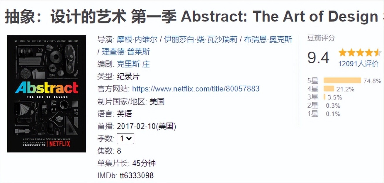 Netflix制作了一系列关于文化创意时尚工业领域的艺术纪录片《抽象: 设计的艺术(Abstract: The Art of Design)》,探访全球创意艺术名家,分享这些活跃于世界顶级设计领域舞台的设计师所持的创意艺术理念。