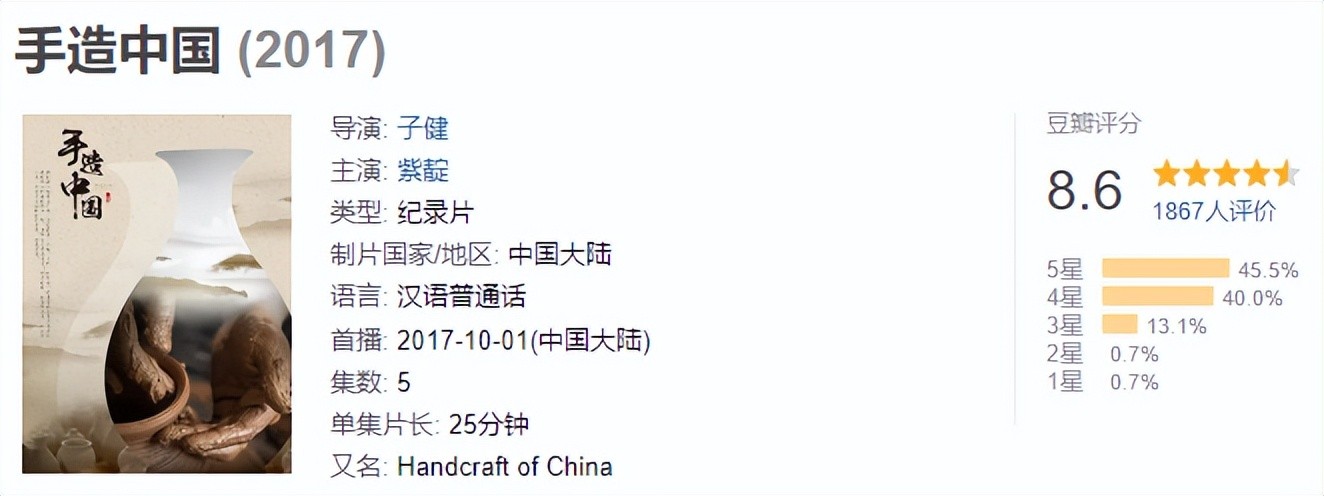 这是一部通过手造瓷器去展现中国人精神世界的纪录片。该片根据成瓷的每一道工序的特性,从每一个手工瓷匠人身上,提炼出了中国人身上流淌着的文化基因,它们是对自然的敬畏,是对手艺的专注、执着和热爱,是对成败得失的淡然,是对薪火相传的笃定,这是几千年来在农业文明的怀抱里所产生的属于中国人特有的精神情怀。