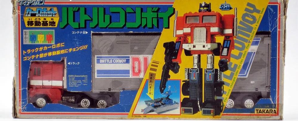 最早的擎天柱玩具来自于戴亚克隆的移动基地(Battle Convoy)产品线。通过对擎天柱的车厢进行强化升级,把车厢作为装甲,车头作为身体进一步整合,我们获得了一个全新的产品铠甲合体(Powered Convoy)。