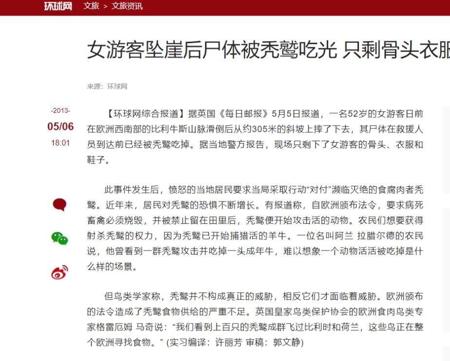 后来经过相关人员的勘察,这位女子摔下来的时候,并没有去世,可能是被秃鹫活生生的吃掉了。