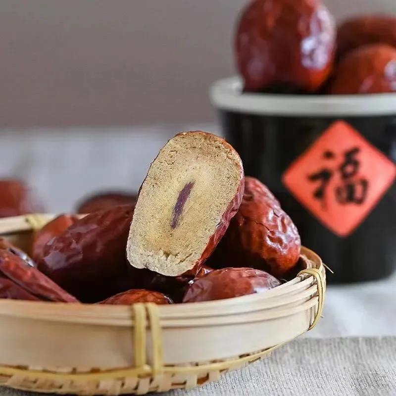 赞皇大枣,产自石家庄市赞皇县,被誉为“枣中之王”,是中国国家地理标志产品。赞皇县有着悠久的枣树栽培历史,这里的大枣不仅个头大,而且皮薄肉厚,口感甘甜。赞皇大枣不仅可以直接鲜食,还能加工成枣干、枣糕、枣酱等多种制品,深受消费者喜爱。据说,赞皇大枣的栽培历史可以追溯到千年之前,是当地农民世代相传的宝贵财富。
