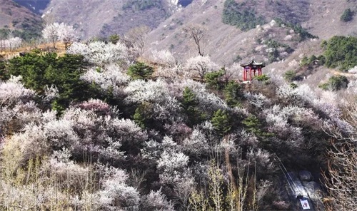 十里杏花谷,位于棋盘山脚下的段里沟,这里有树龄超百年的老杏树,也有近年刚生长起来的新杏树,层峦叠翠、千姿百态、绵延十里。3月中旬,漫山遍野粉色、白色交织的杏花浓烈而鲜艳,杏花以山势、海拔的高低错期盛开,赏花期一般可持续至4月初期,是石家庄周边绝佳的赏花、游玩、拍照打卡游玩地。主要打卡地点有杏花潭、杏韵亭、三石秀场、“杏”运石、小石滩记、古杏王等。