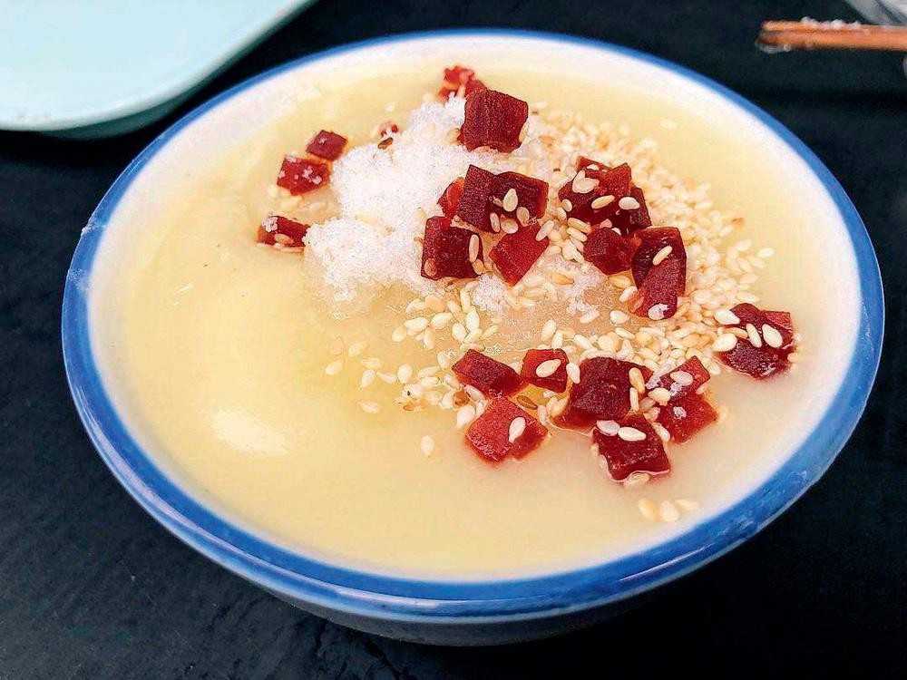梁实秋先生的《雅舍谈吃》里,有《酪》一文。文中说:“酪就是凝冻的牛奶,北平有名的食物,酪有酪铺。我家附近,东四牌楼根儿底下就有一家。最有名的一家是在前门外门框胡同北头儿的路西,我记不得他的字号了。掀门帘进去,里面没有什么设备,一边靠墙几个大木桶,一边几个座儿。他家的酪,牛奶醇而新鲜,所以味道与众不同,大碗带果的尤佳,酪里面有瓜子仁儿,于喝咽之外有点东西咀嚼,别有风味。每途经其地,或是散戏出来,必定喝他两碗。”