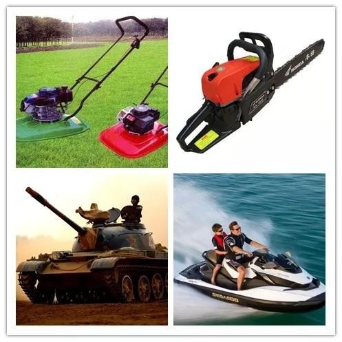 综合来看,四冲程发动机应用的更加广泛,绝大多数的汽车和工程机械上搭载的都是四冲程发动机,而二冲程发动机更多的应用在那些不常使用和“推重比”很重要的场合。比如说剪草机、油锯、航模、农作机械等,一些小型摩托车和比较讲究动力性能的越野摩托上使用的也比较广泛。还有就是坦克、船舶、重型运输车辆等,这些车型对发动机的动力性要求高,又要求发动机的重量轻、体积小,二冲程发动机就是很好的选择。