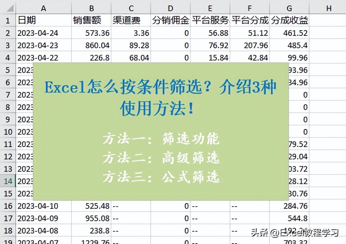 今天我们来学习一下关于条件筛选的3个不同方法。