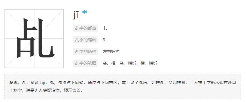 那么对于这个"乩"字,想必你和我一样,心中顿时升起诸多疑问:这个字该怎么读?表示什么意思?今天就让我们一同探寻"乩"字背后的奥秘。