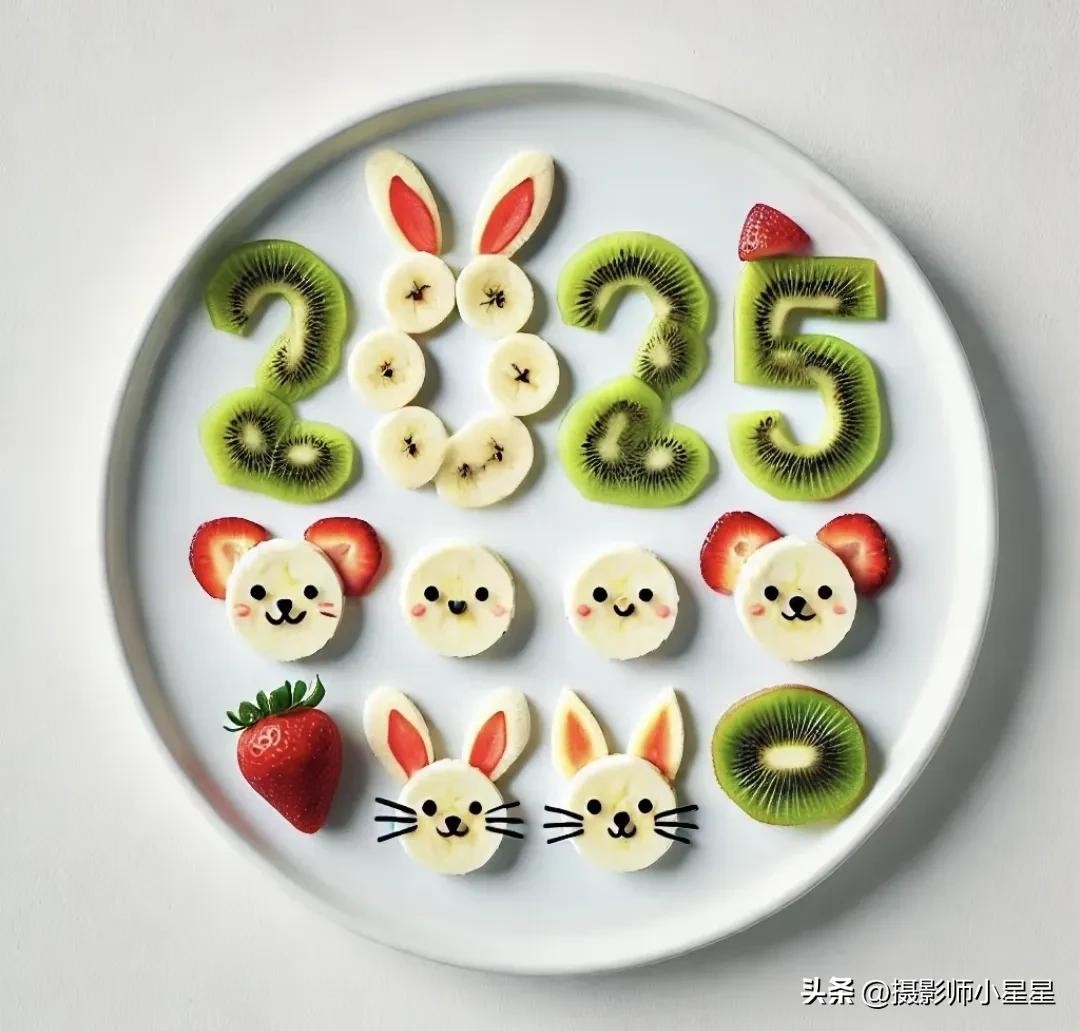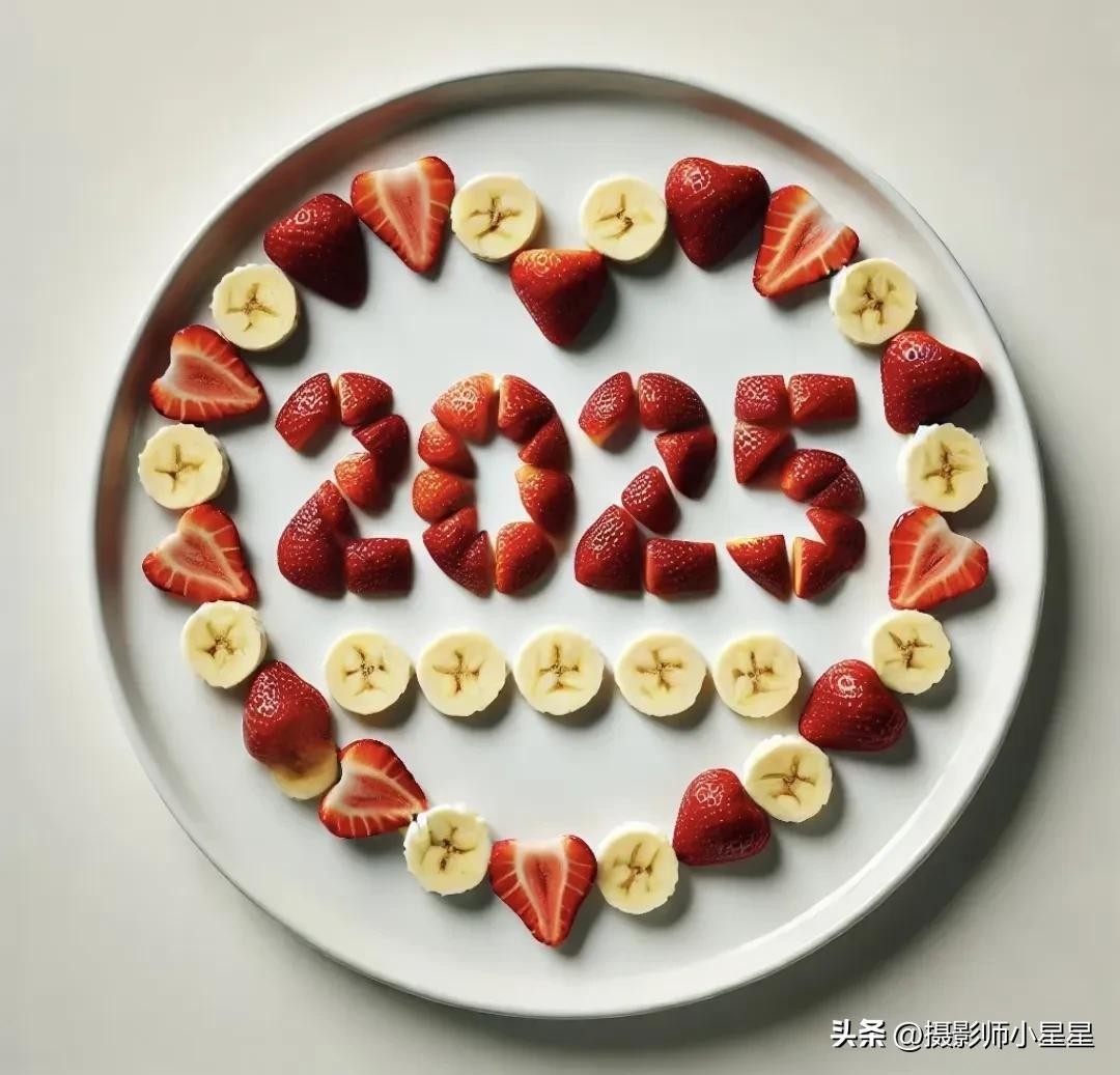 “2025”寓意着新的一年里,人们能够开启新的篇章,迎接新的挑战,创造新的辉煌。数字在中国文化中也有着丰富的象征意义,它代表着希望与未来,能够给人带来信心和力量。这组水果摆盘作品以其独特的设计和美好的寓意,为春节增添了一份喜庆与祥和,让人们在欣赏的过程中感受到新年的美好与希望。
