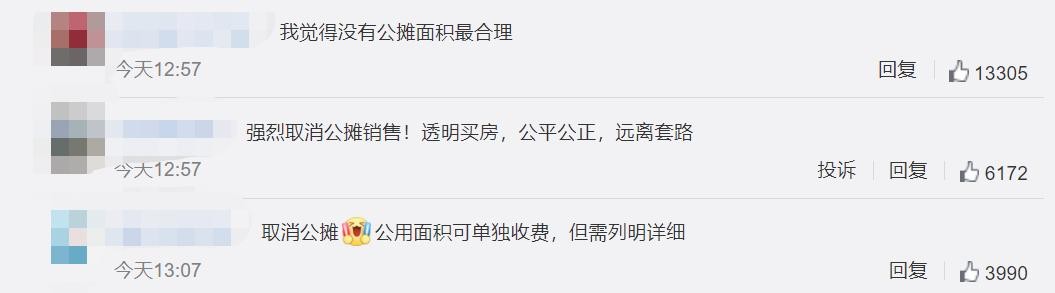 不少网友表示:“我觉得没有公摊面积最合理!”