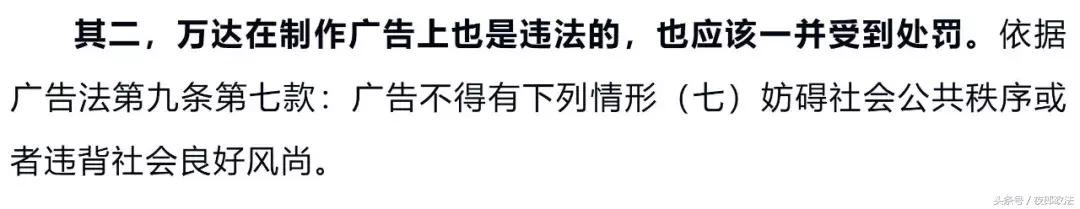 采访中,胡忠义告诉记者:万达的行为违反了《中华人民共和国广告法》中两个相关规定。